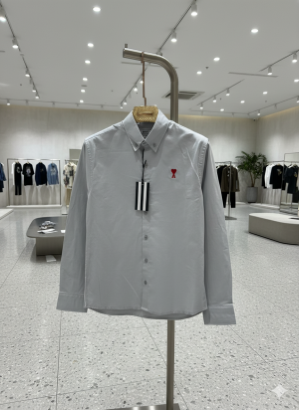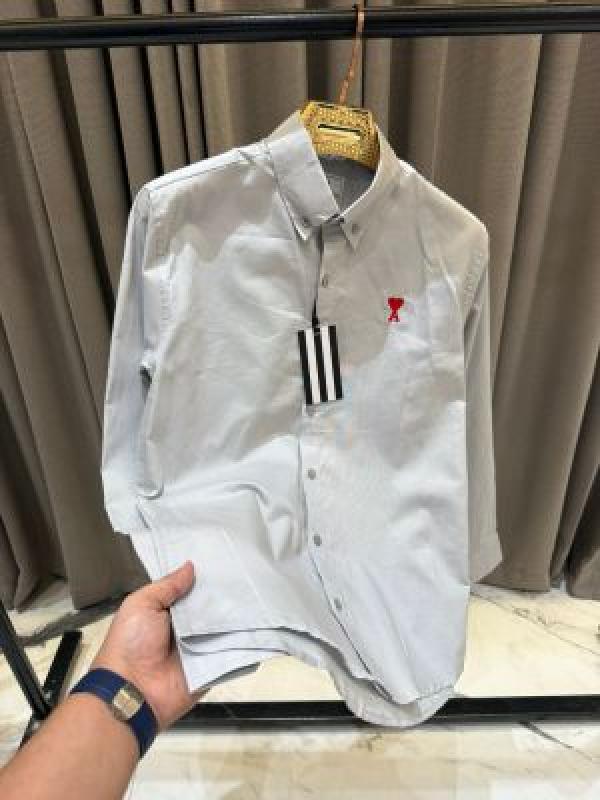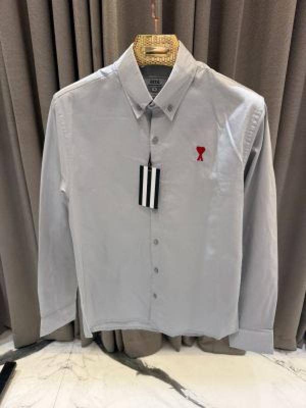 AMI PARIS GREY PREMIUM SHIRT SEMI LINEN FABRIC FULL COMFORT