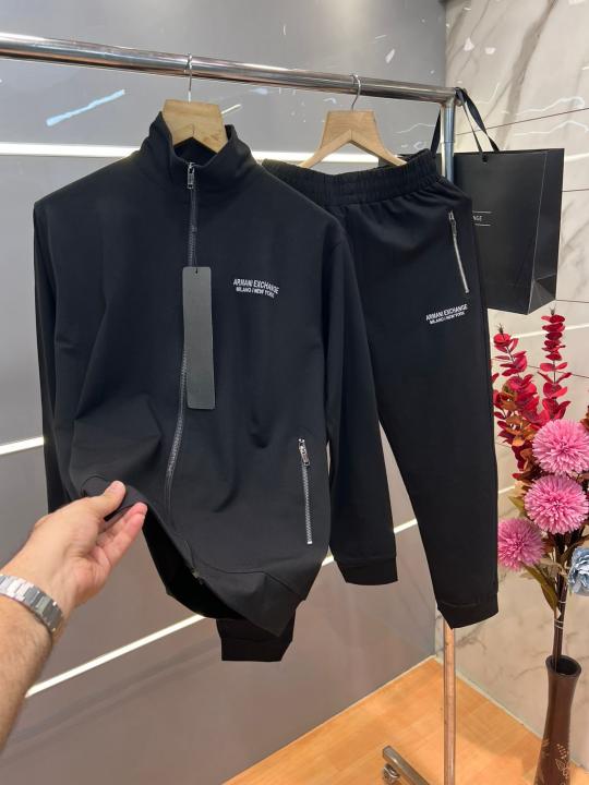 Home Premium Track Suits Arman i Exchange Black Premium Imported Fabric Emboss Logo Zipper style Tracksuit 3582