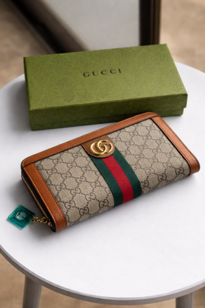 Gucc_i Heritage GG Stripe Zip Wallet With Box (Brown) (3035)
