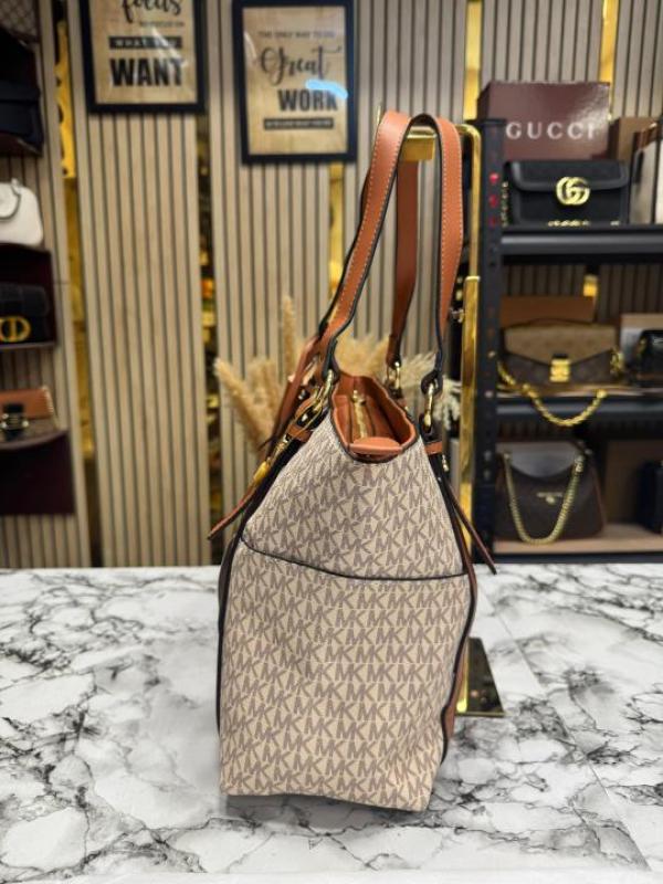 Michael_Kors Jet Set Zip Logo Large Tote Bag With Dust Bag (Beige)