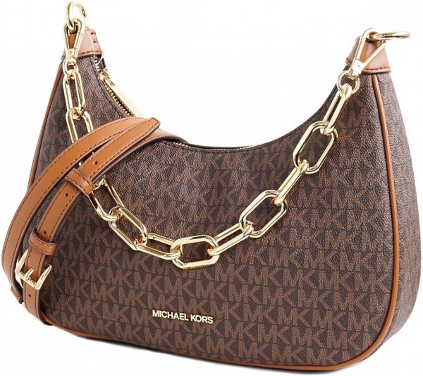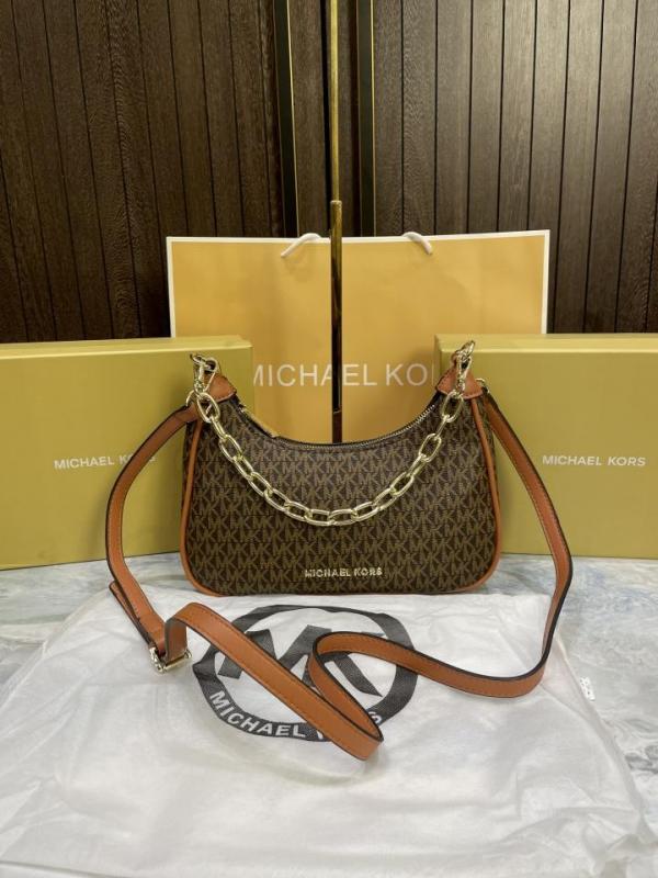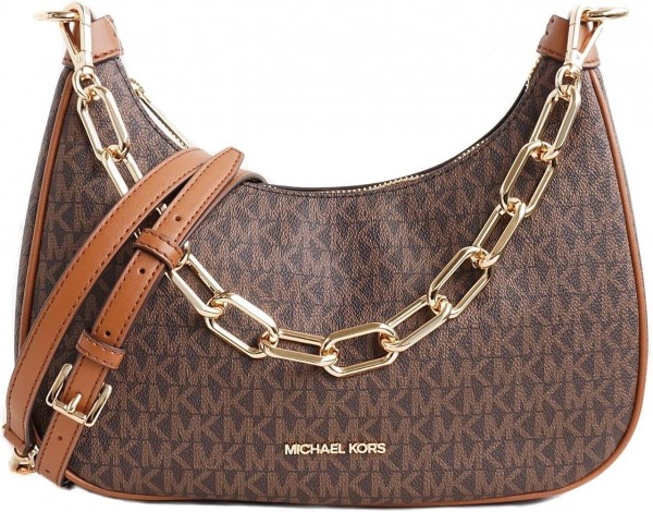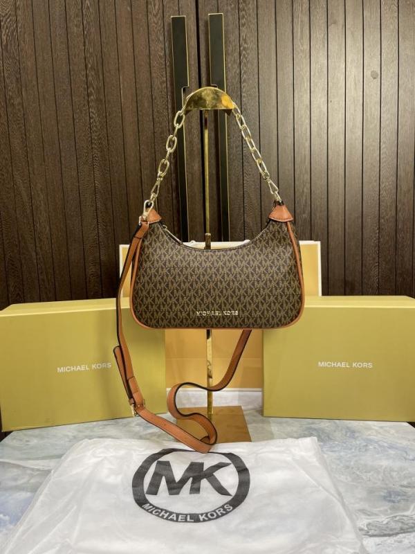 Michael-Michael-Kors Cora Medium Signature PVC Zip Pouchette Crossbody Bag Brown with box & carry bag 69