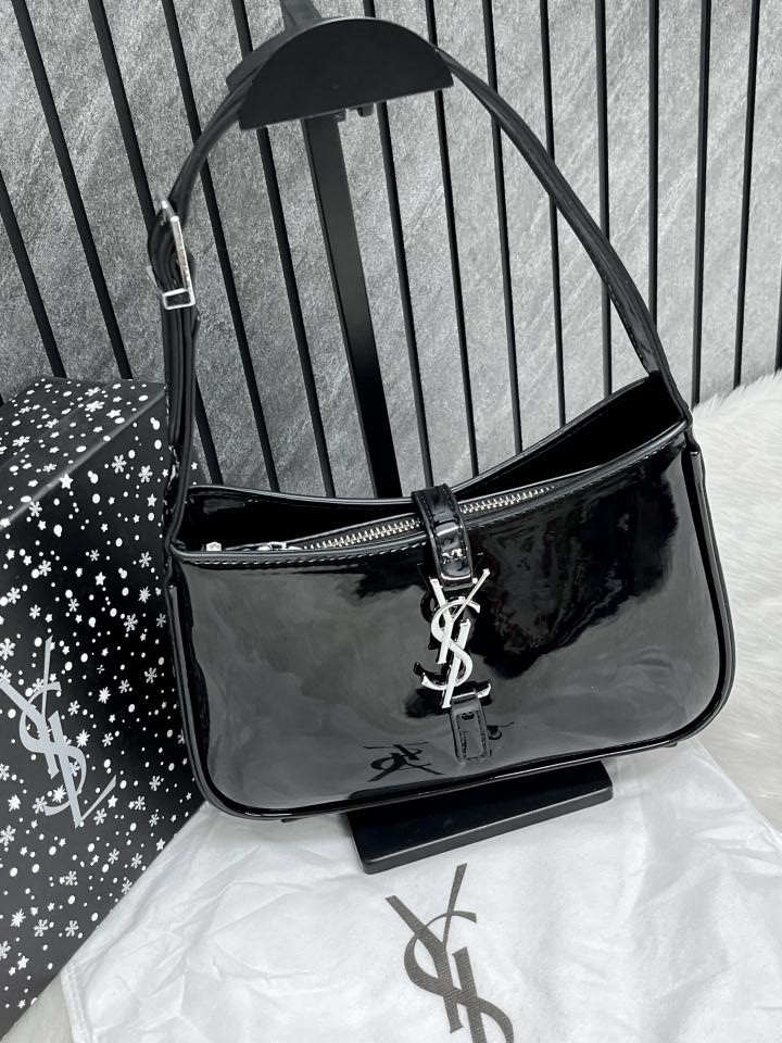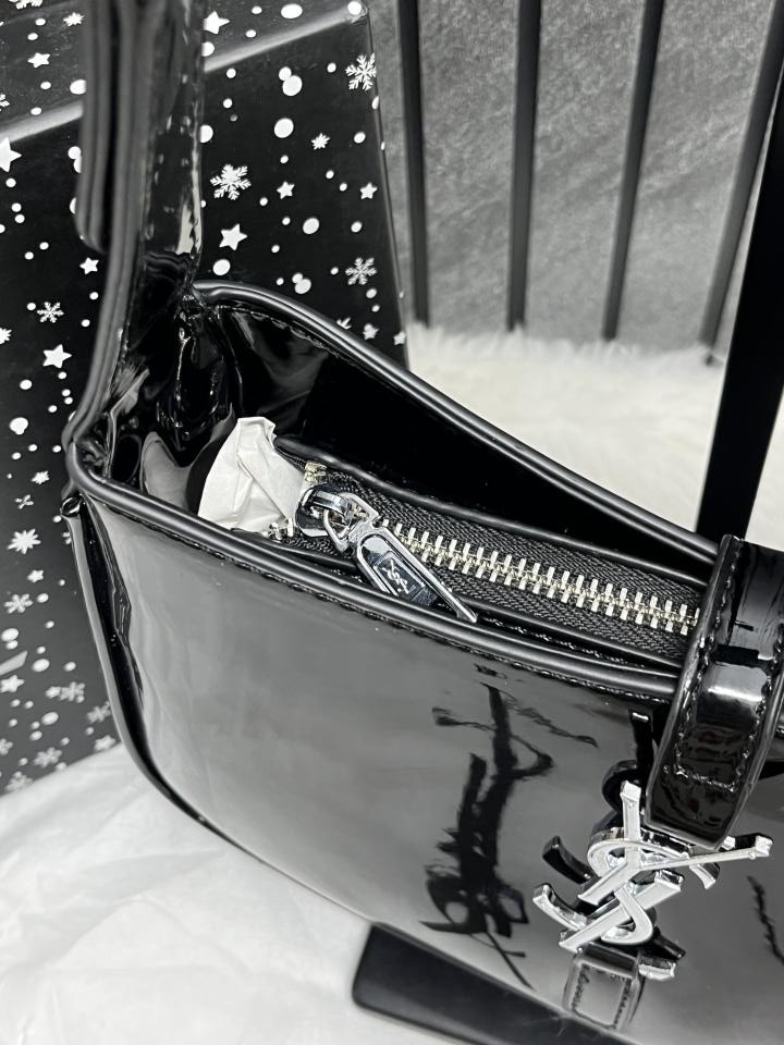Ysl Hobo Patent Leather Top Zip Shoulder Bag With OriginalBox